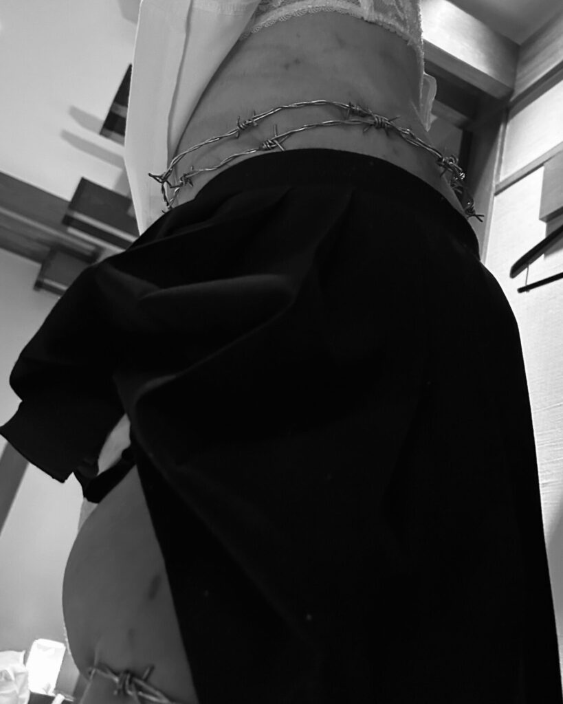 腕を有刺鉄線で巻いた状態で鞭打ちなどもいたしました。